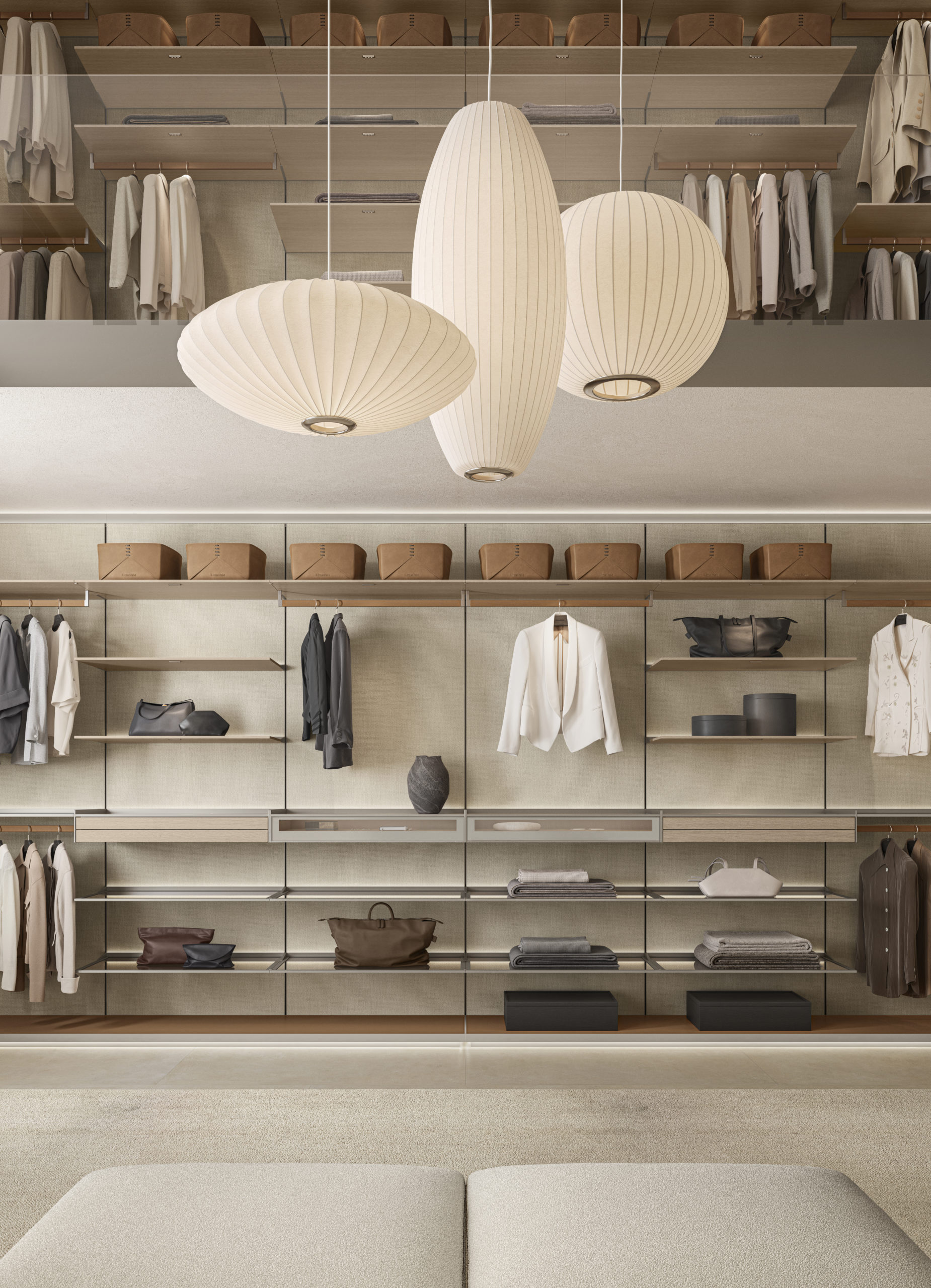 Signé Giuseppe Bavuso, Hedon transforme le dressing en un espace de vie, alliant raffinement, légèreté et configurations personnalisées.