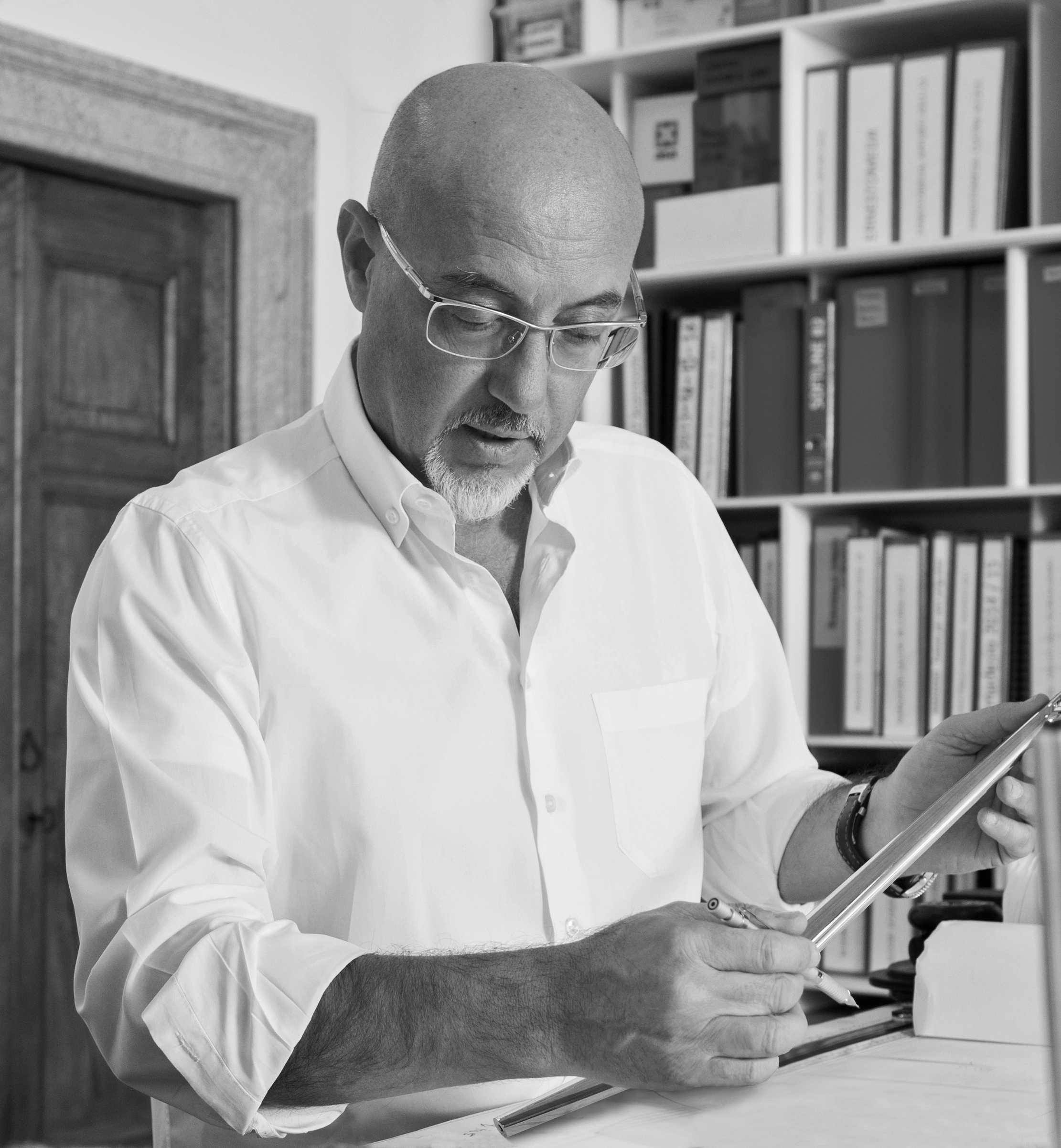 DM : La collaboration avec Giuseppe Bavuso s’inscrit dans la durée et repose sur une vision partagée du projet, en forte résonance avec la culture de l’entreprise. Depuis plus de trente ans, il contribue à définir le langage Rimadesio en concevant chaque produit comme partie d’un système global, où design, technologie et innovation industrielle s’intègrent naturellement.