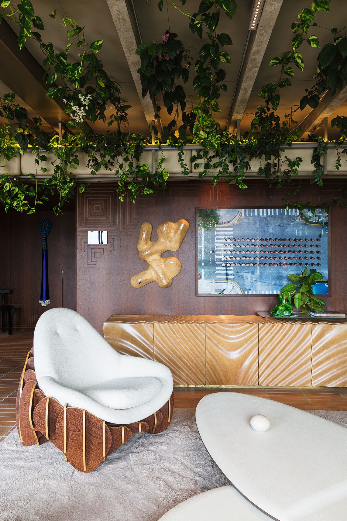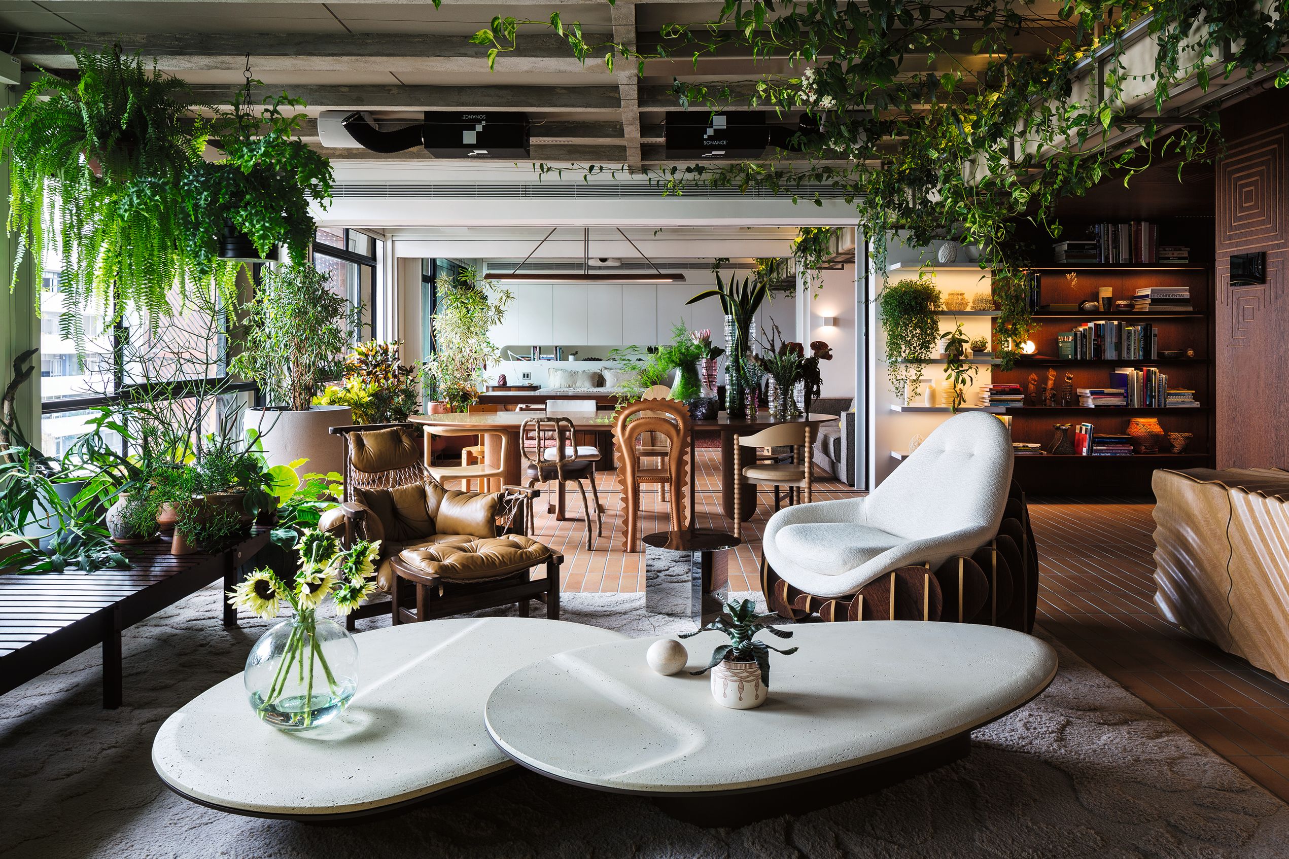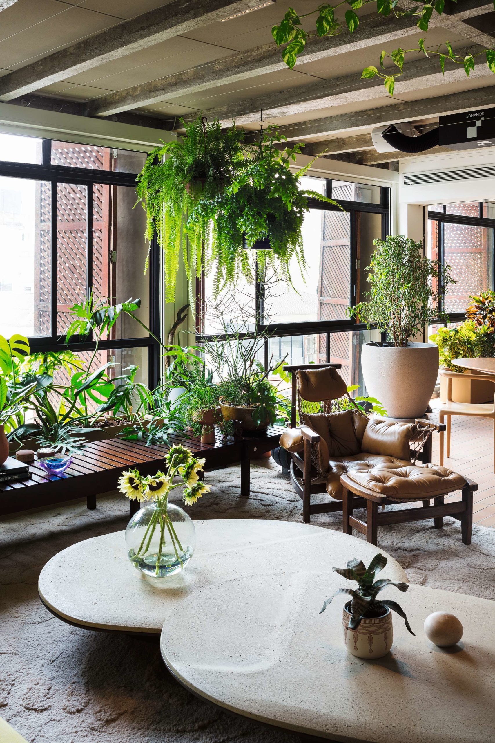 Malgré une couverture végétale de plus de 50%, le paysage de la métropole d’Amérique du Sud tient plus du gris béton que du vert de la forêt atlantique. C’est dans cette jungle bétonnée que l’architecte Guto Requena – qui a notamment conçu les intérieurs des bureaux de Google à São Paulo – a réalisé un projet unique en son genre. Dans un bâtiment des années 1960, âge d’or de l’architecture moderniste locale, il a mis en pratique plus de vingt ans de recherches universitaires sur les modes de vie et l’architecture à l’ère digitale. Le résultat est un lieu où la végétation est reine et où les mondes physique et virtuel se combinent pour créer un espace hybride.