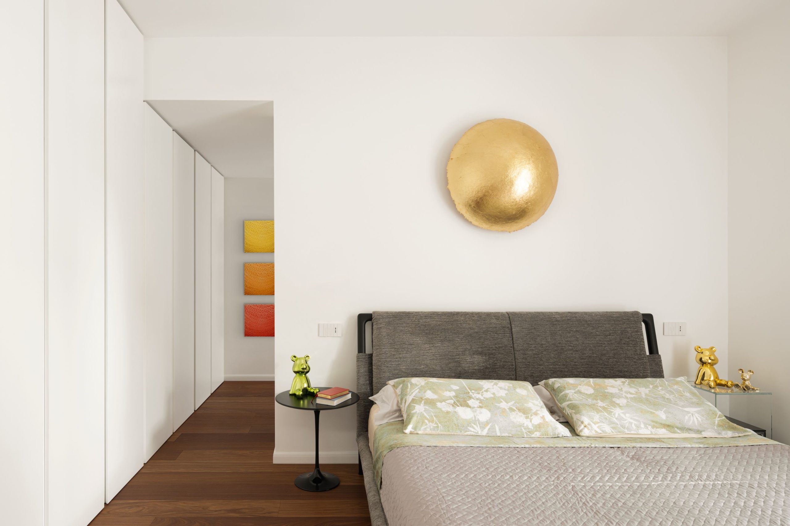 Les œuvres de Bruno Donzelli et les photographies de Francesco d’Alessandro ponctuent les murs. La blancheur des volumes, volontairement dominante, agit comme un révélateur : ici, le mobilier devient l’acteur principal et chaque pièce, savamment mise en scène, compose une atmosphère à la fois élégante, sereine et profondément contemporaine.